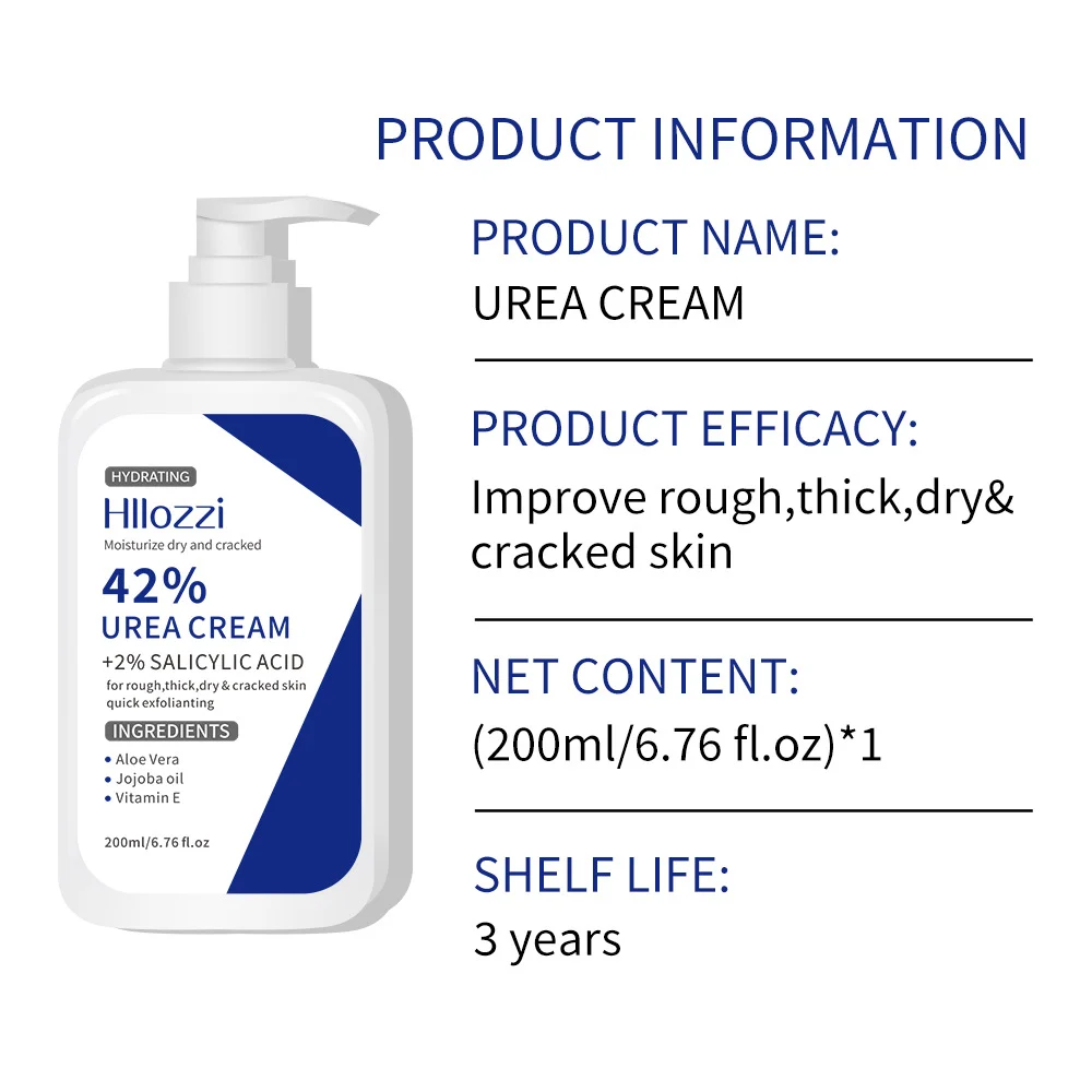Experience the ultimate hydration with Hllozzi 42% Urea Cream. Specially formulated with 2% Salicylic Acid, this multi-functional moisturizer is designed to tackle rough, thick, and cracked skin, providing quick exfoliation and deep nourishment.