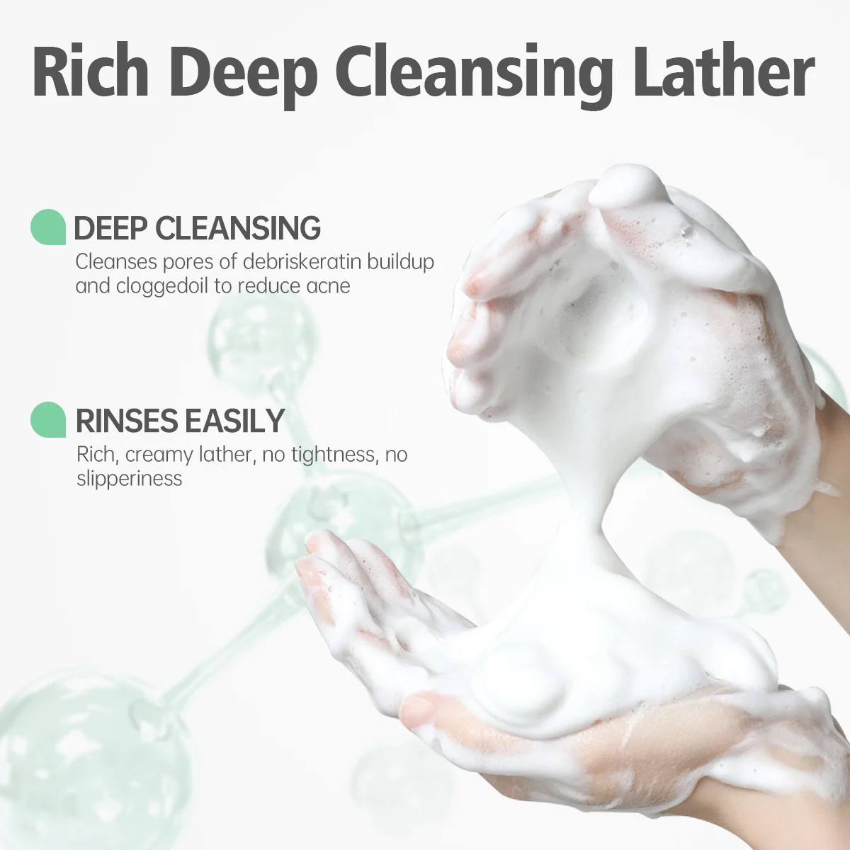 1. Wet the face, take an appropriate amount of cleanser in the palm and make a rich foam.