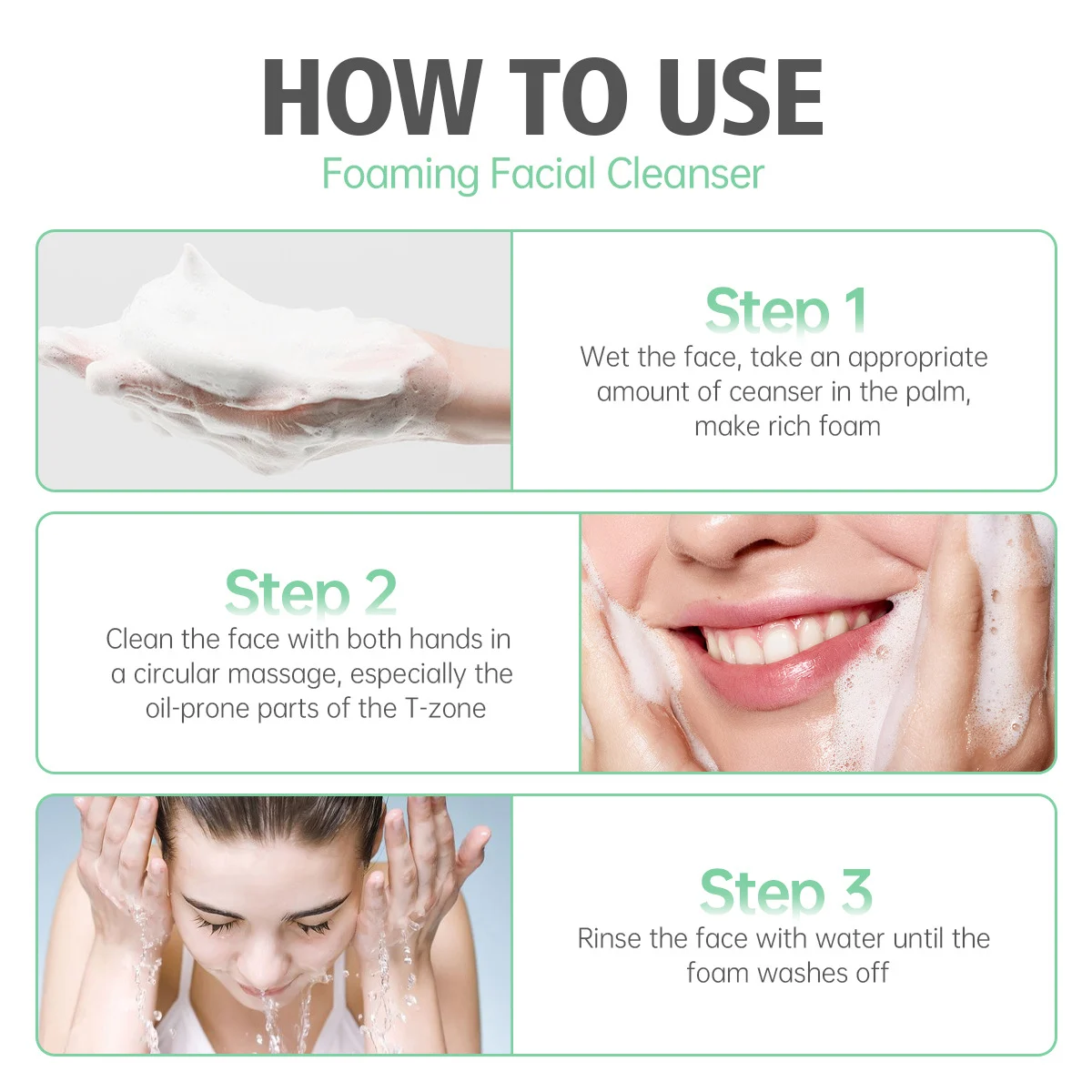 3. Rinse the face with water until the foam is completely washed off.