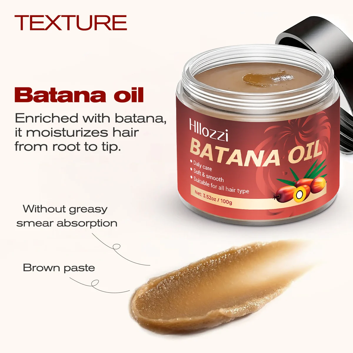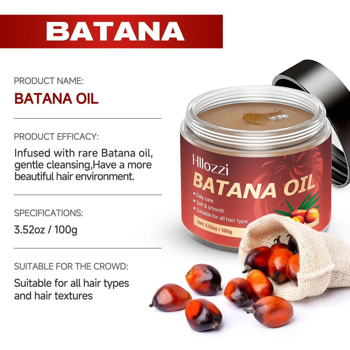 • Natural Batana Extract: Contains high-quality Batana oil known for its hair-strengthening and moisturizing properties.