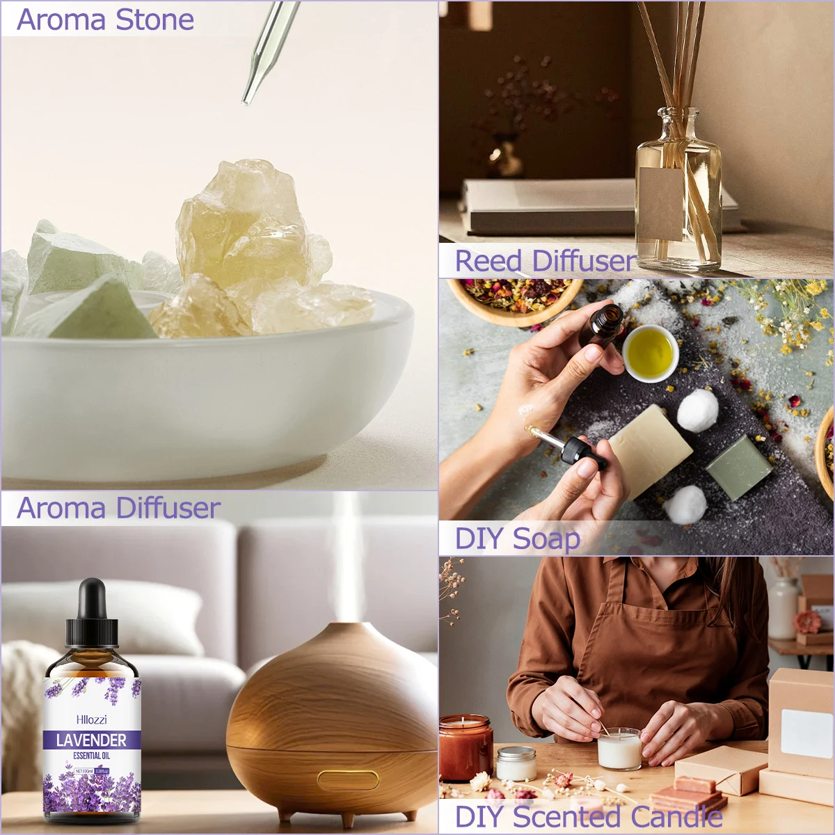 Hllozzi Natural Plant Essential Oils are premium botanical extracts designed to enrich your lifestyle with fascinating scent journeys. These oils feature a transparent liquid texture that is easy to absorb and moistening to the skin without leaving a greasy residue.