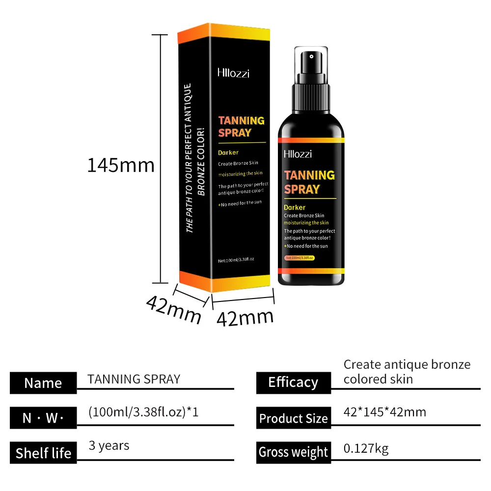 Hllozzi Tanning Spray is designed to help you achieve a perfect antique bronze color quickly and easily without sunlight exposure. This moisturizing formula provides a natural and long-lasting tan for both the face and body.