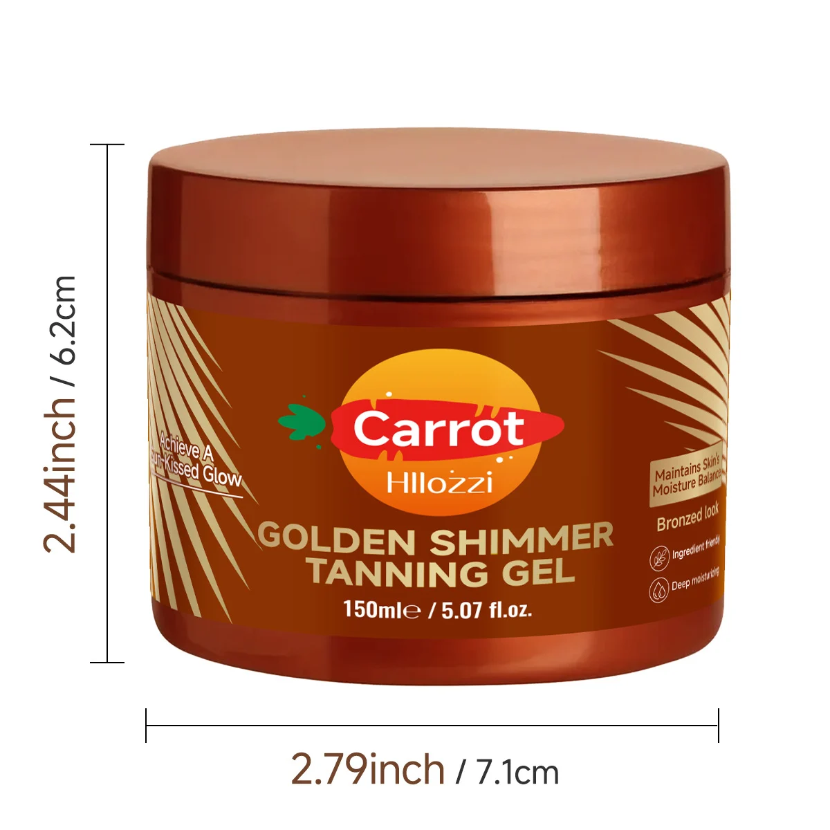 Hllozzi Shimmer Golden Tanning Gel with Carrot Extract for Bronze Glow 150ml