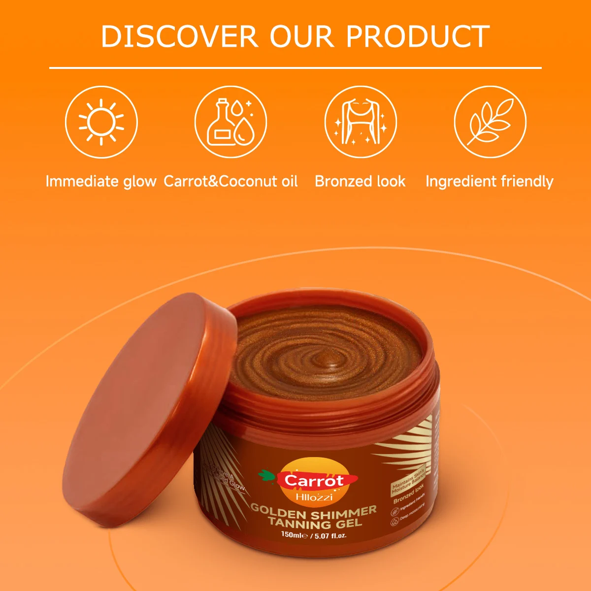 Experience the ultimate tanning results with Hllozzi Golden Shimmer Tanning Gel. Specially formulated with natural carrot extract, this intensive tanning gel helps you achieve a deep, uniform, and healthy bronze luster in less time.