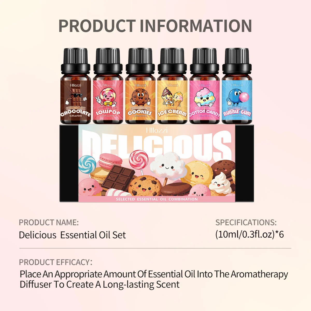 Hllozzi Sweet Dessert Essential Oil Set - 6 Pack Candy Scented Aromatherapy Oils