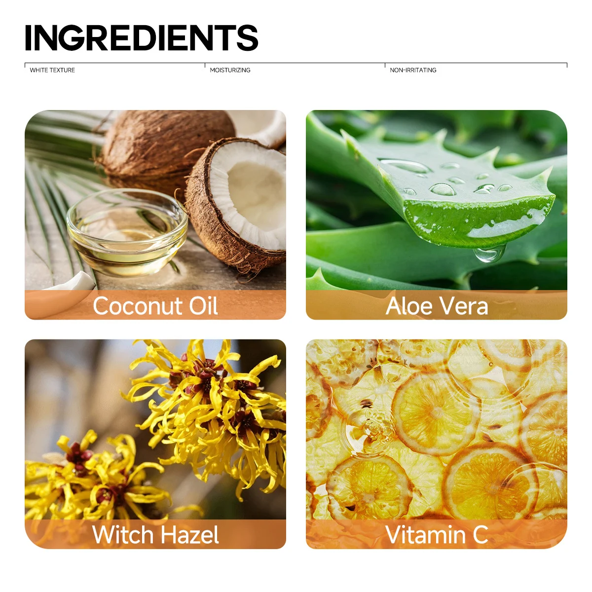 • Natural Ingredients: Formulated with skin-loving ingredients including Coconut Oil, Aloe Vera, Witch Hazel, and Vitamin C.