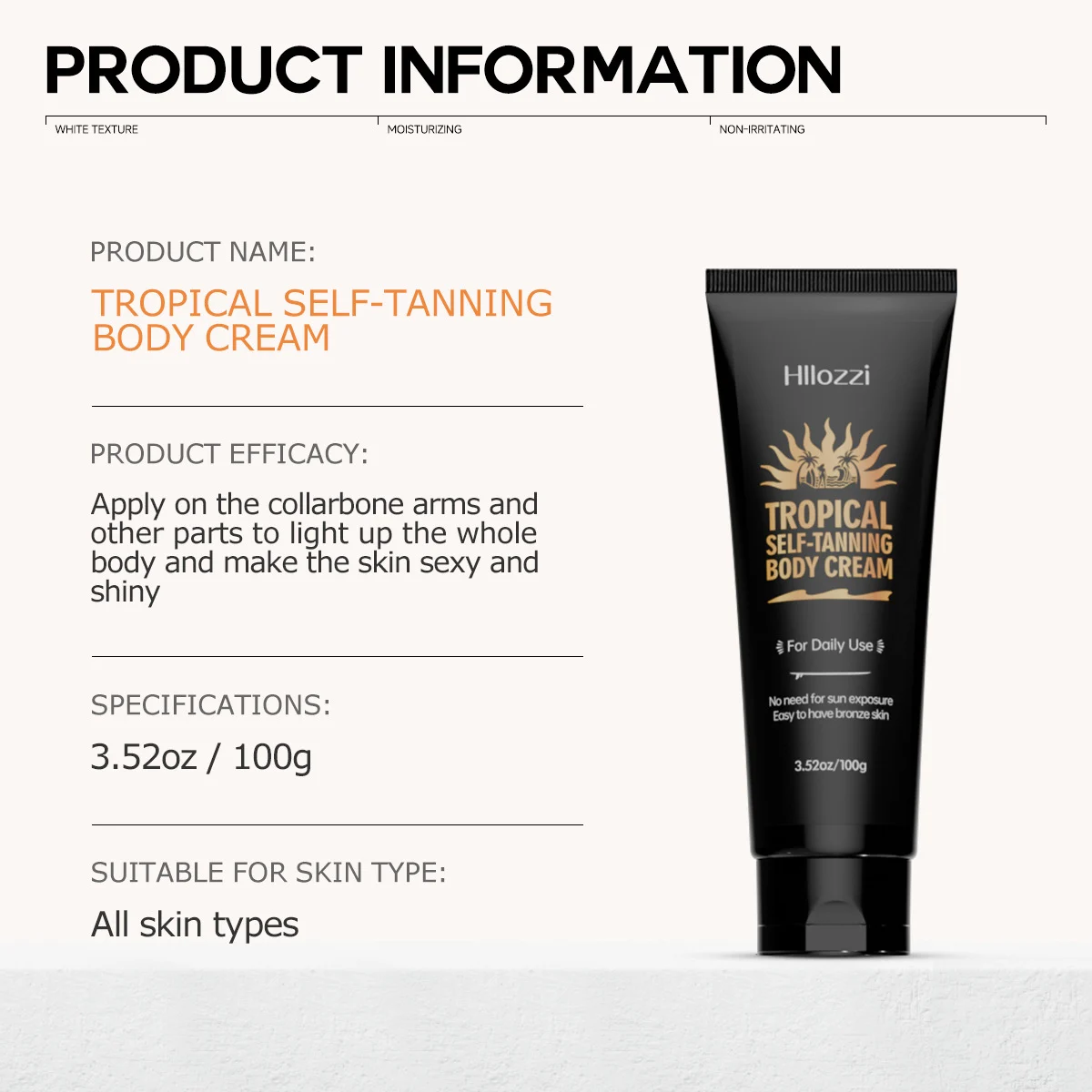 Hllozzi Tropical Self-Tanning Body Cream for Sunless Bronze Glow 100g