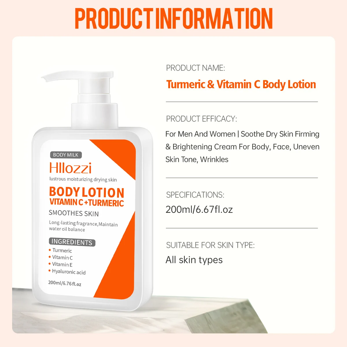 Hllozzi Vitamin C & Turmeric Body Lotion Brightening Moisturizer for Dry Skin 200ml